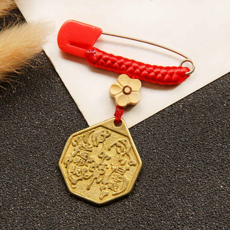 Pregnant baby pin Gossip mirror to ward off evil spirits pressure shock newborn baby children child safety brooch Copper mirror carry-on pendant