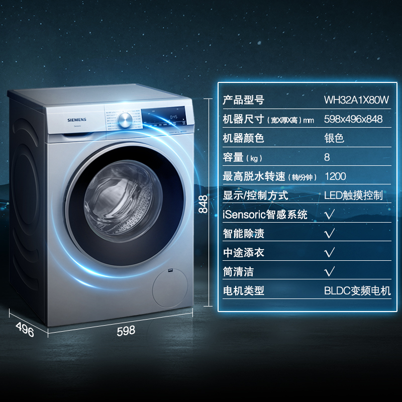 SIEMENS 8kg ultra-thin new inverter automatic drum washing machine WH32A1X80W