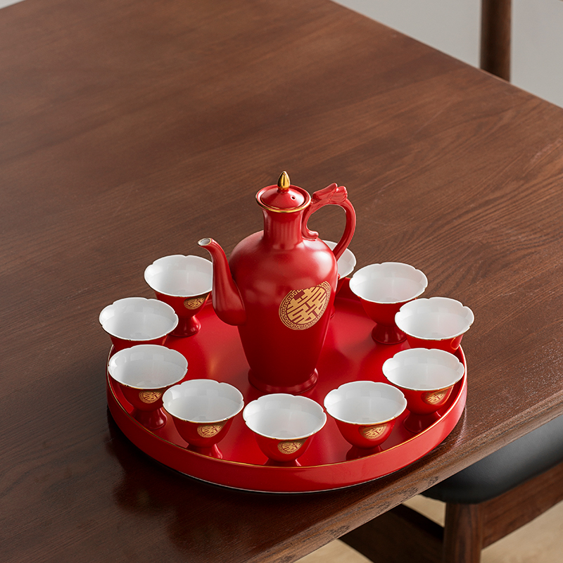 Hanhong wedding ceramic wine set Chinese wedding toast cup antique double happiness wine pot wedding festive toast cup