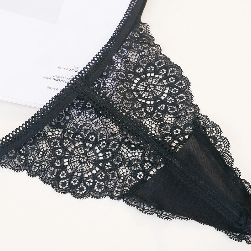 Panties female lace transparent clay pants pure cotton crotch with a rope large-code t pants hot temptation