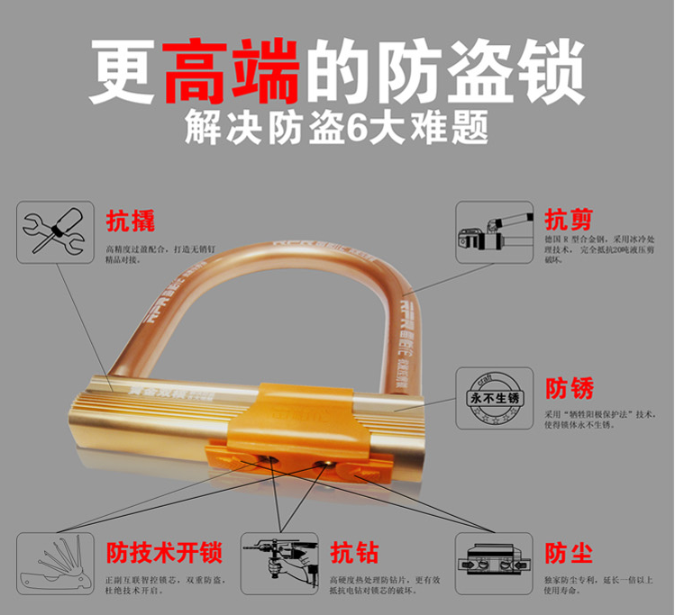 German Rapalen gold dual-core lock anti-shear lock double insurance locomotive lock U-lock electric car lock anti-theft lock
