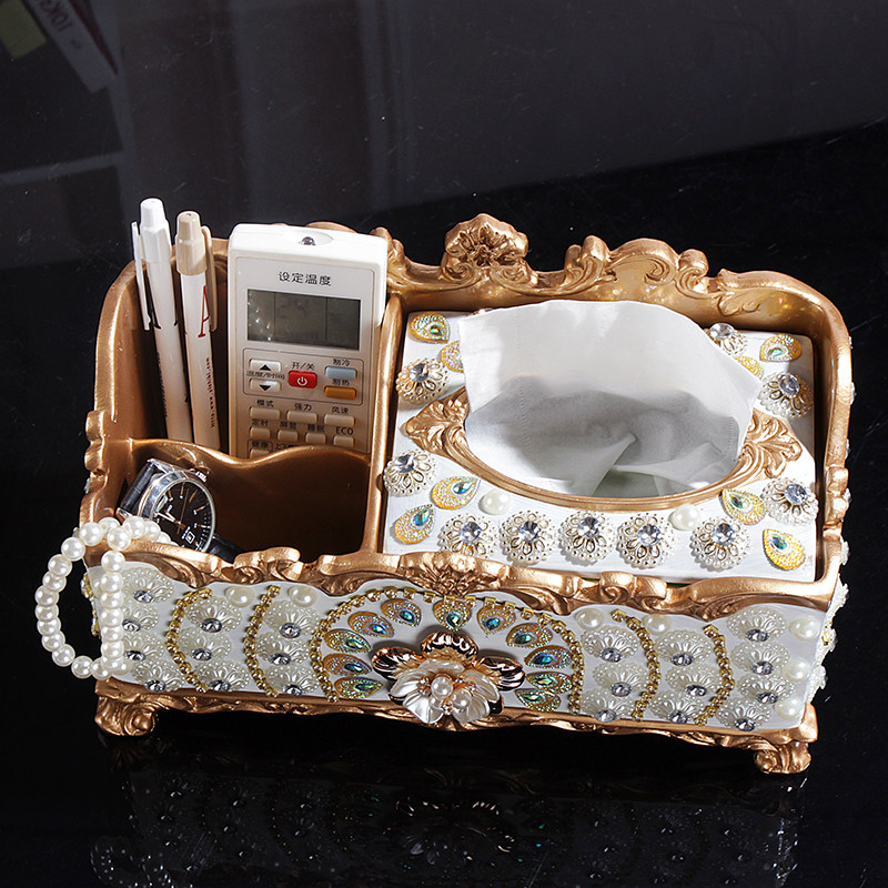 Eurostyle Paper Towel Box Living Room Tea Table Home Desktop Large Toilet Paper Box Luxurious Multifunction Remote Control Containing Box