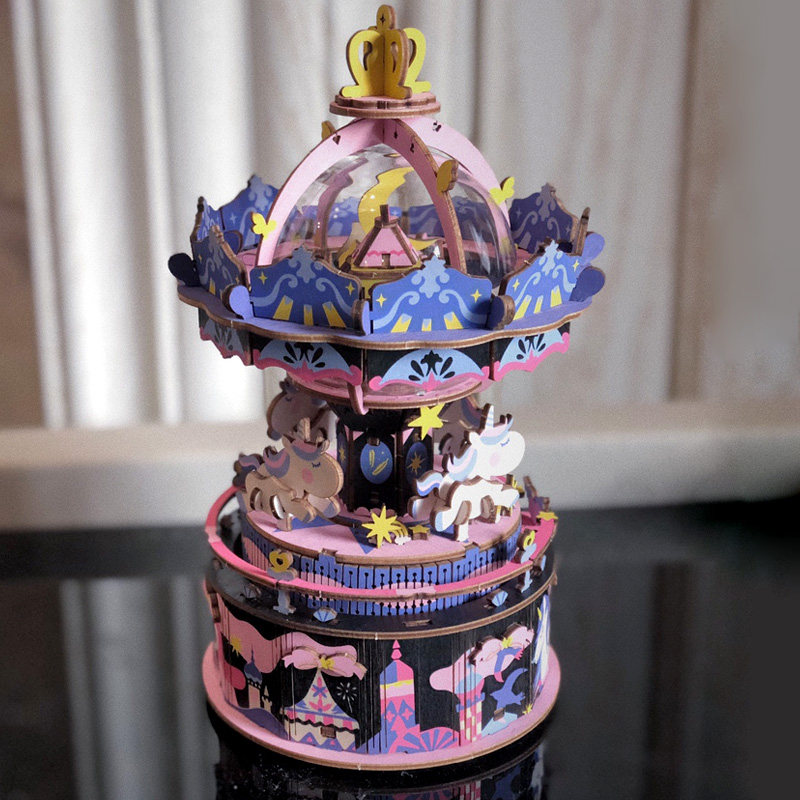 If the city of clouds diy wooden rotating music box puzzle music handmade girlfriend birthday New Year gift girl
