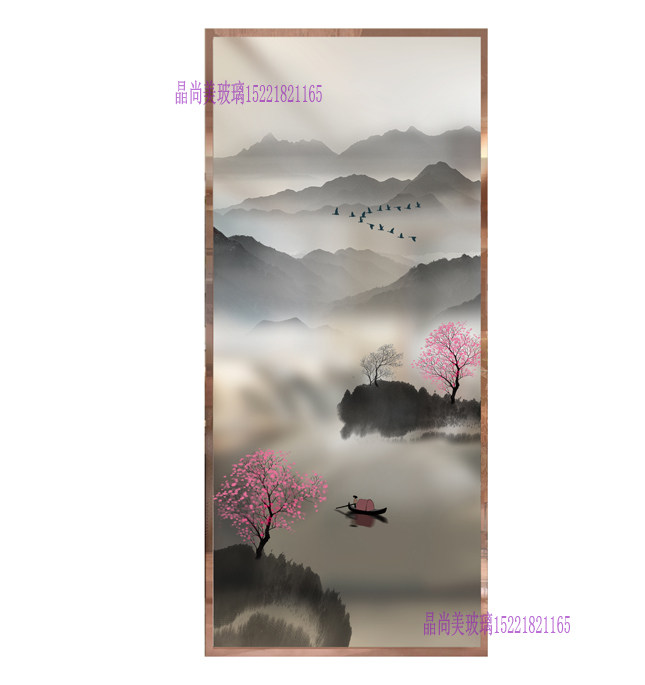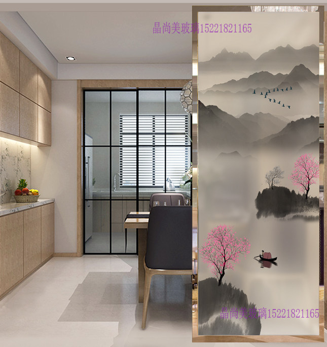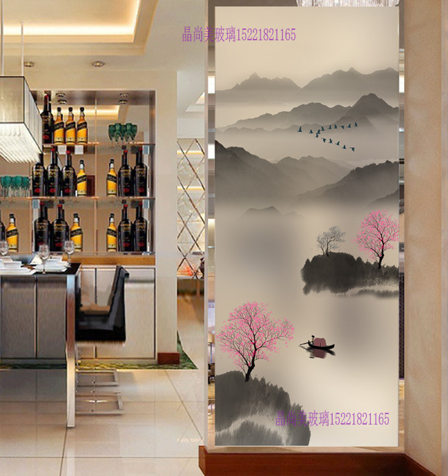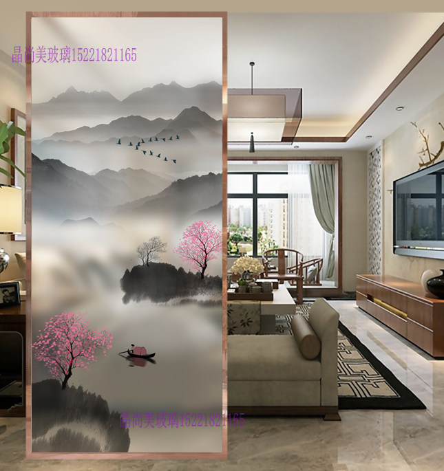 Glass-screen glass Water ink landscape painting New Chinese style in art glass clamping sericite glass partition glass shoe cabinet
