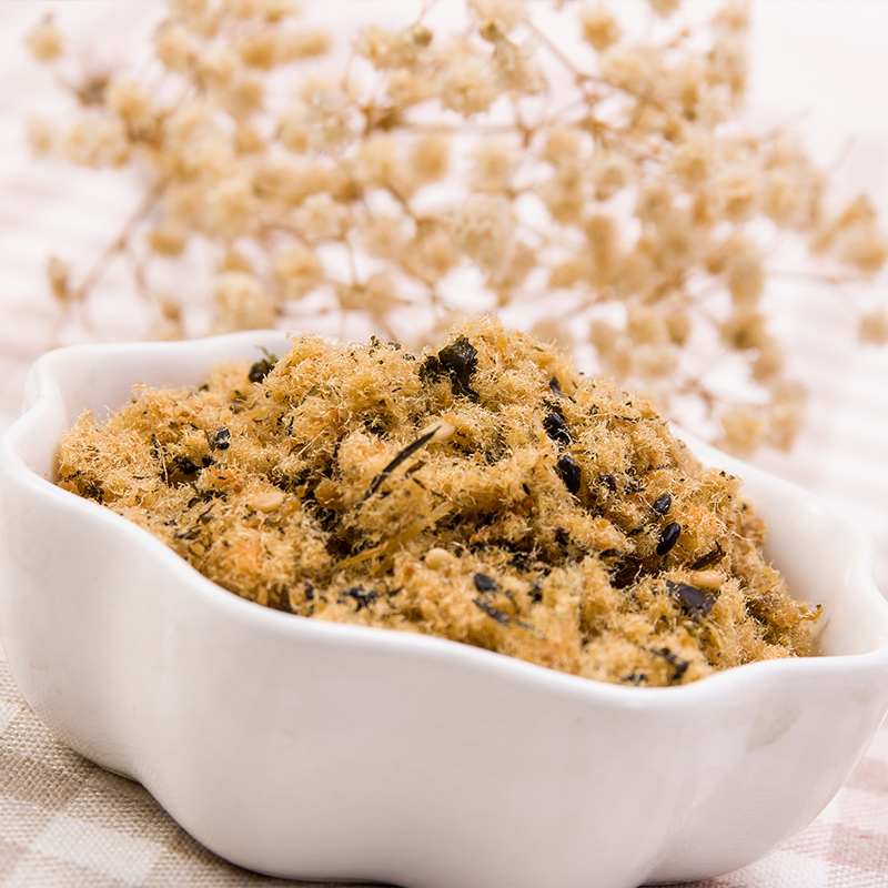 Pork Brewed Soy sauce Vegetable oil Black Sesame White Sesame Seaweed White sugar