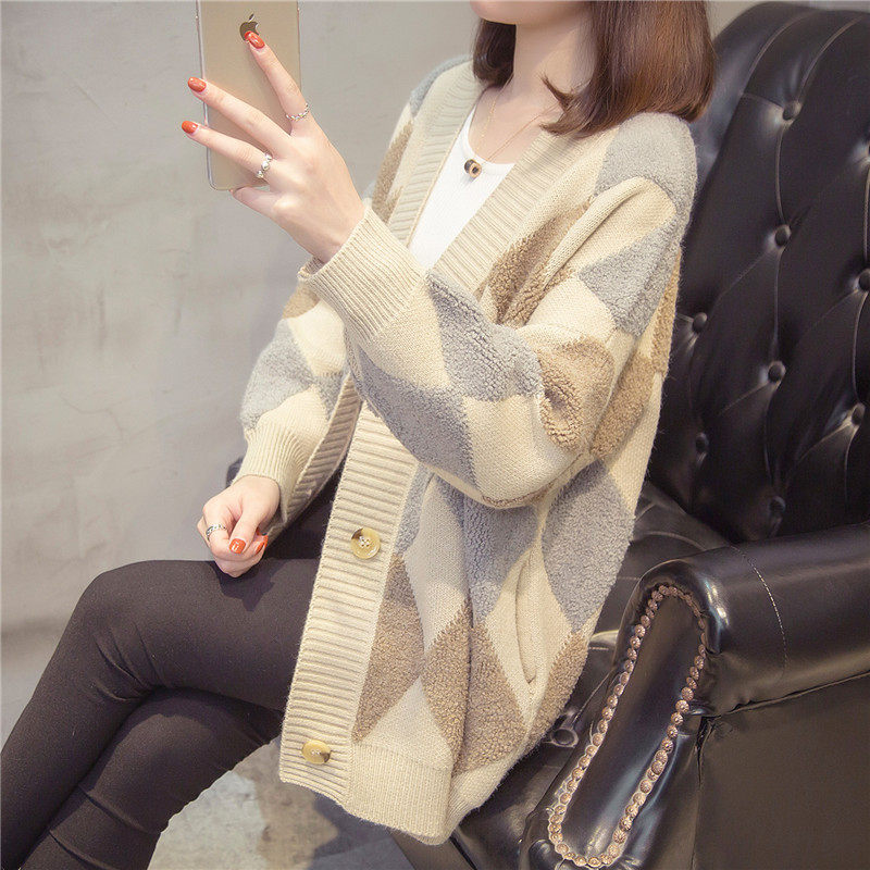 Net red Lazy Breeze Knit Cardiovert Thickened Coat Woman Han Edition 2022 Autumn Winter New Foreign Pie Wave Classic Sweater Woman