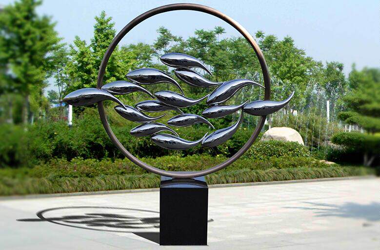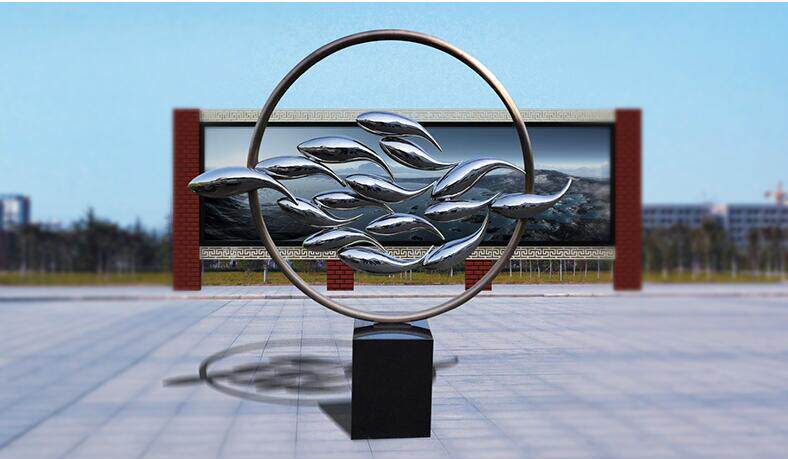 Stainless Steel Abstract Sculpture Hotel Lobby Club Creative-style Lobby Outdoor Waterscape Group Fish Sculpture