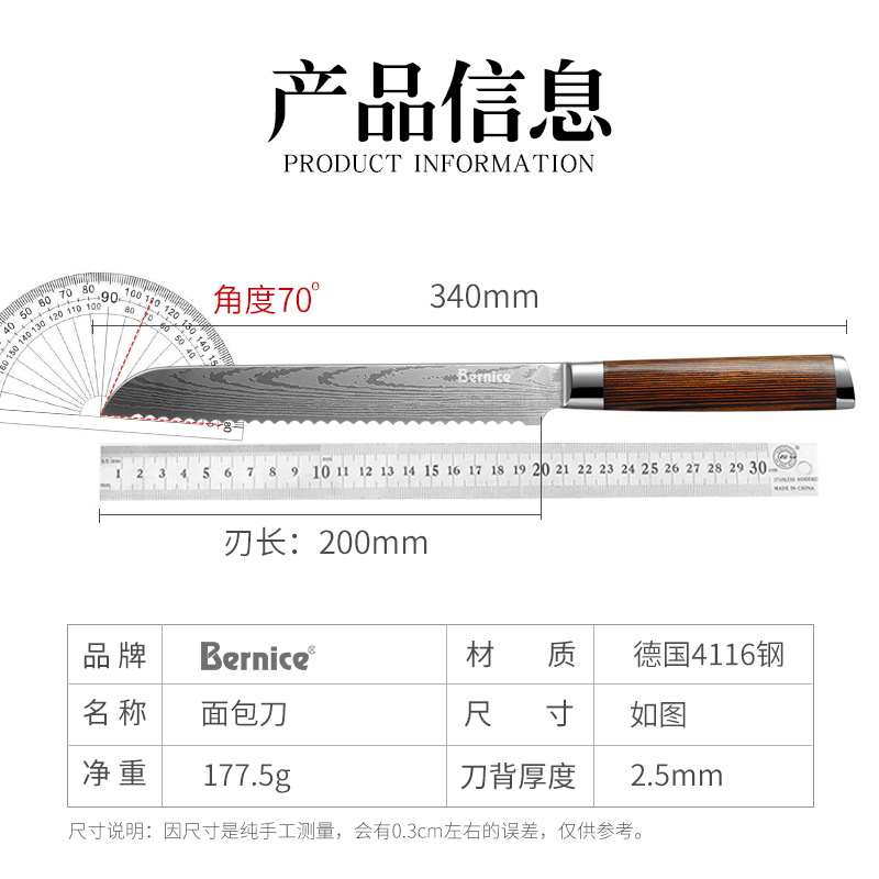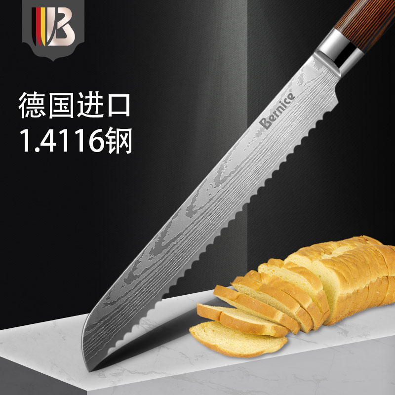 Wave bread knife (German 4116 steel) Bread knife (5 chrome 15 molybdenum vanadium steel) Feather pattern bread knife (Damascus steel)