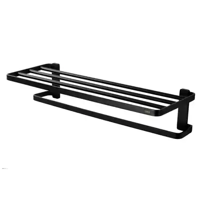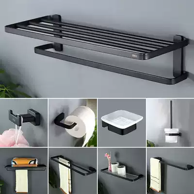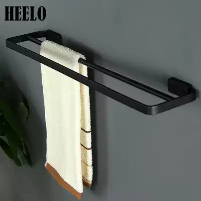 Black double-layer towel rack copper wall-mounted perforated powder room bathroom padded European towel rail bathroom hardware pendant