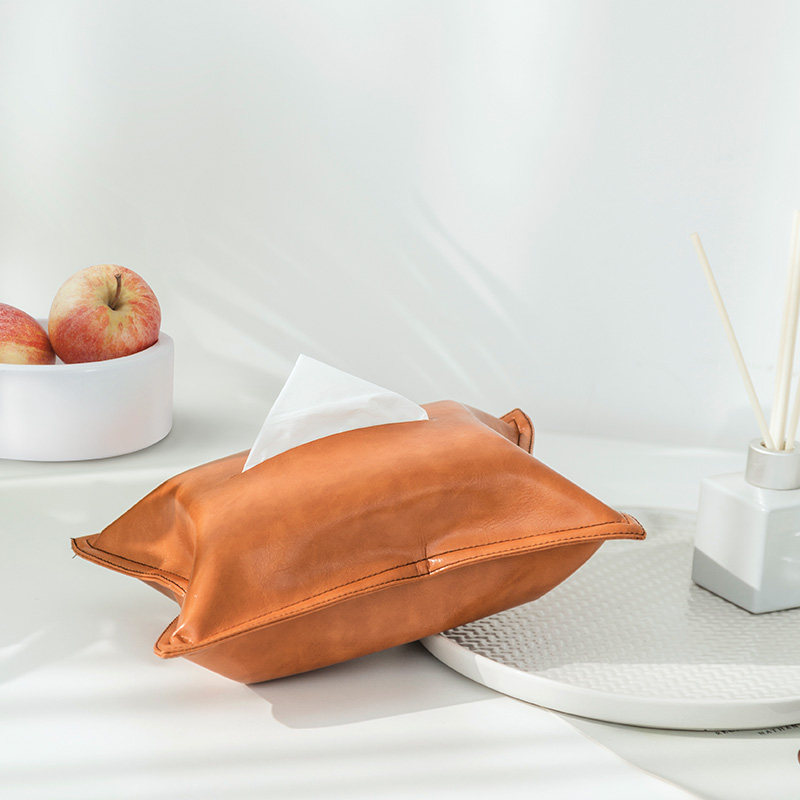 Light luxury solid color oil wax skin tissue cover Household removable toilet paper bag Car car tissue cover Medium removable toilet paper box bag