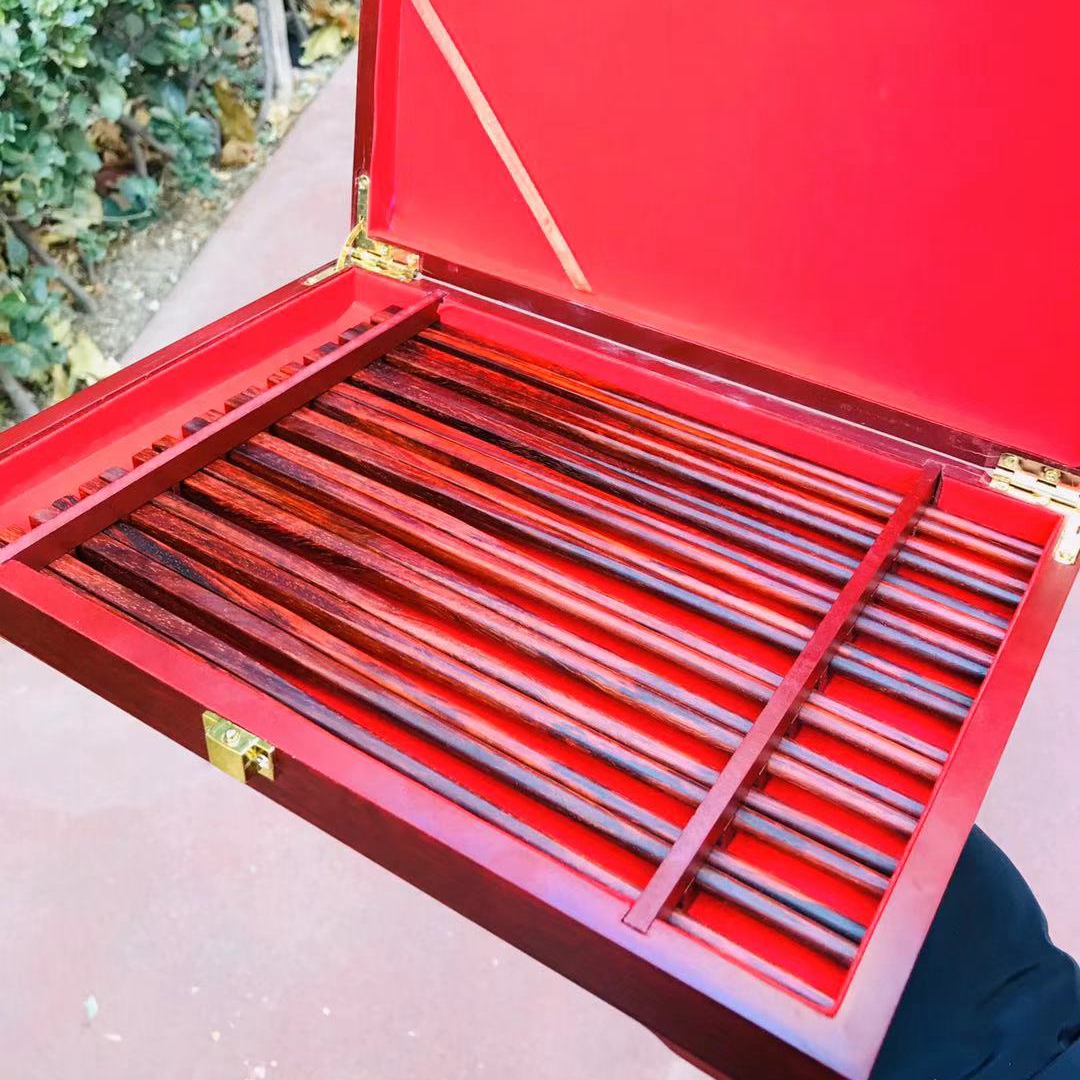 Indian Small Leaf Purple Sandalwood Red Wood Chopsticks Solid Wood Cutlery Retro Chinese Style High Gear Gift Suit 10 Double wood boxed