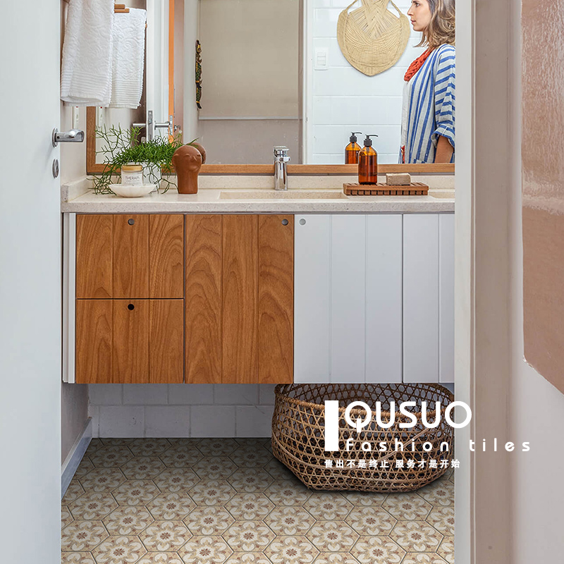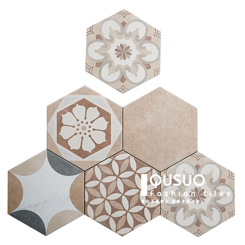 Anecdote retro hexagonal tiles Nordic Kitchen Makeup Room Wall Tiles Extreme wind Balcony Hexagon Small Flower Brick