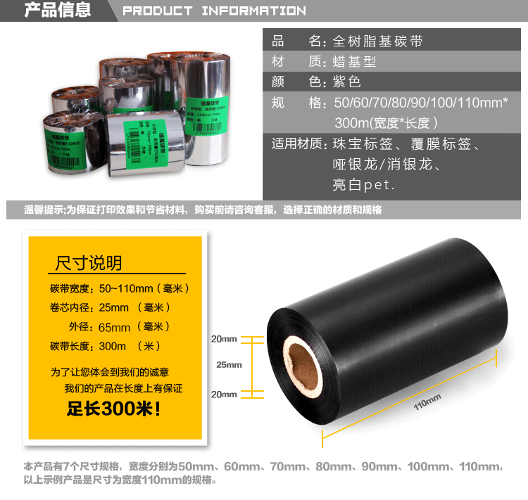 Imported Purple Noodle Full Resin Base Carbon Ribbon 50 50 60 60 80 80 90100110m m 90100110m m 300M Dual Axes Small Volume Heart 90 m Ribbon Zebra's right-hand Jiabote Silver Label