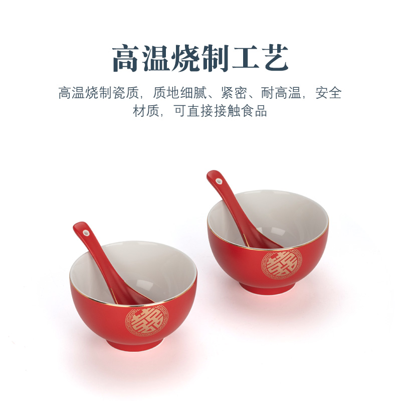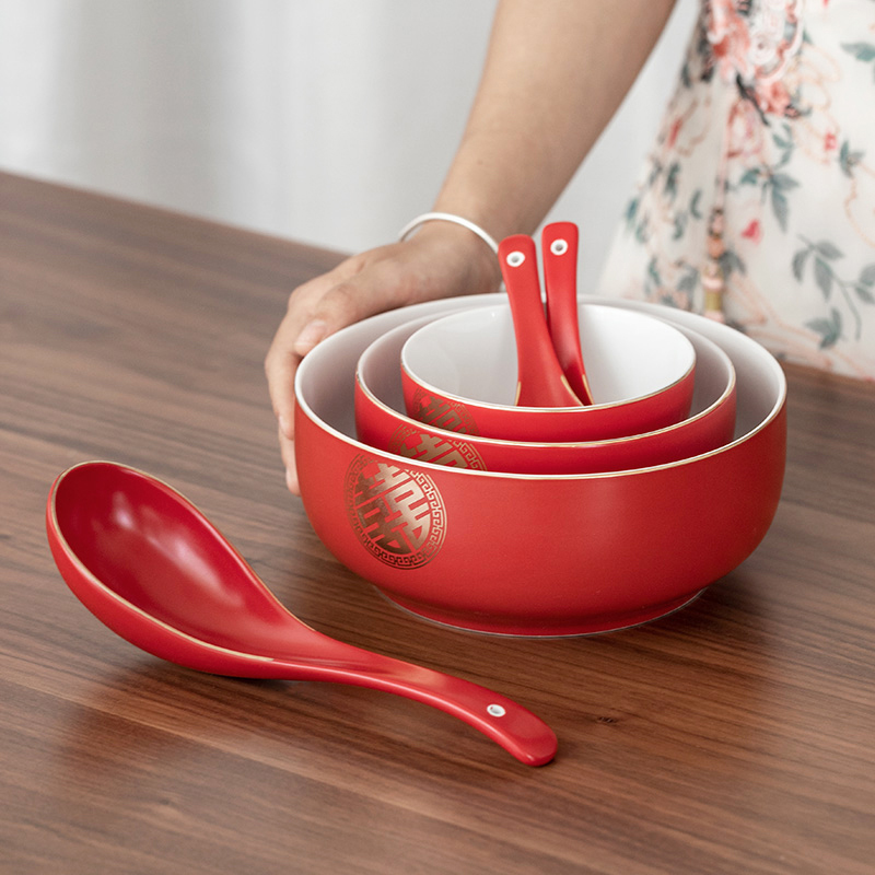 Hanhong Wedding Bowl High-end Longevity Bowl Ceramic Bowl Household Large Bowl Large Noodle Bowl Wedding Tableware Red Bowl