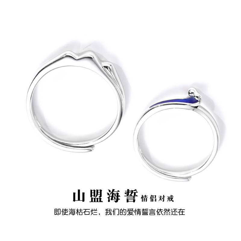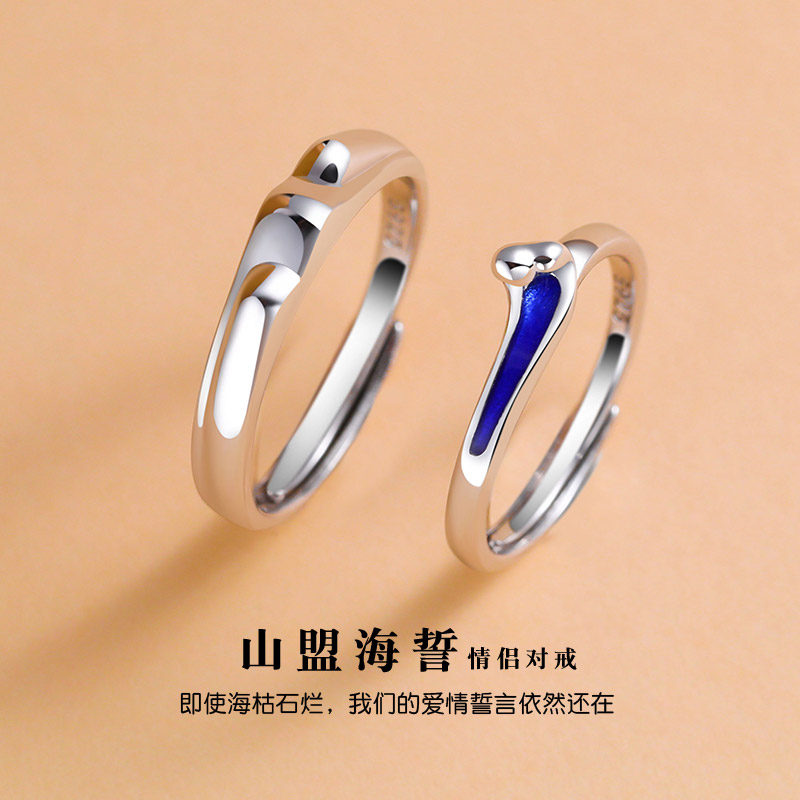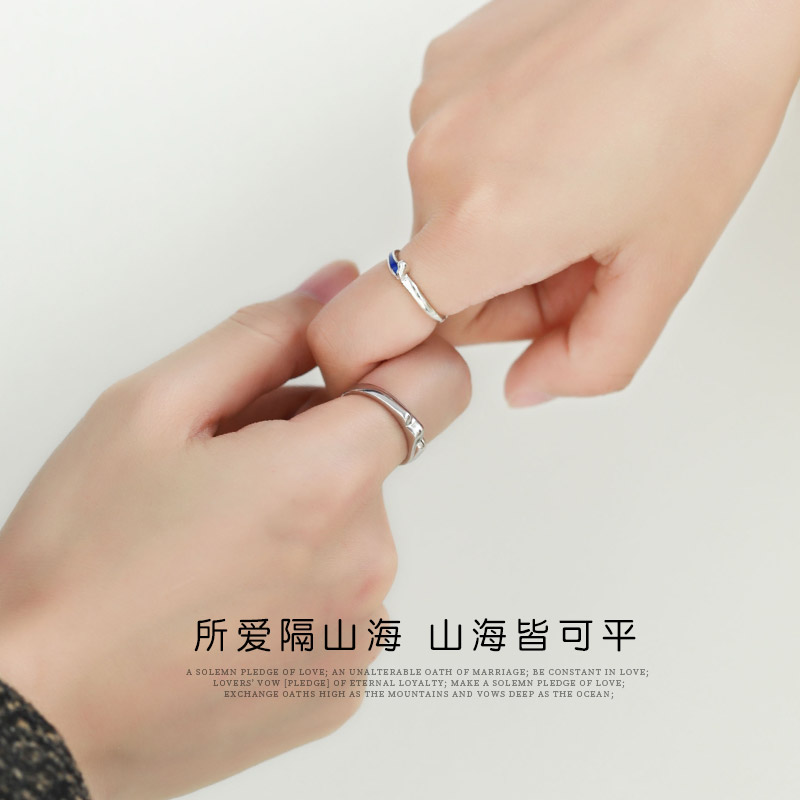 Shanhai couple ring girl silver a couple original design of the original design of the Shanhai Couple Ring Simple small men