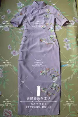 Spring and summer thin fairy fan embroidery improved Chinese cheongsam holiday dress handmade embroidered version