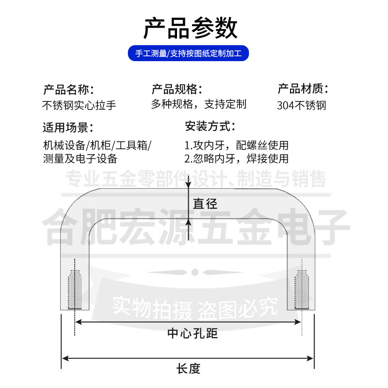 304 stainless steel iron chrome plated industrial U-handle Distribution box Chassis cabinet equipment Solid inner tooth straight handle tooling