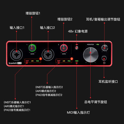 Focusrite Scarlett 2I4 new 4I4 sound card USB external recording sound card arrangement electric guitar