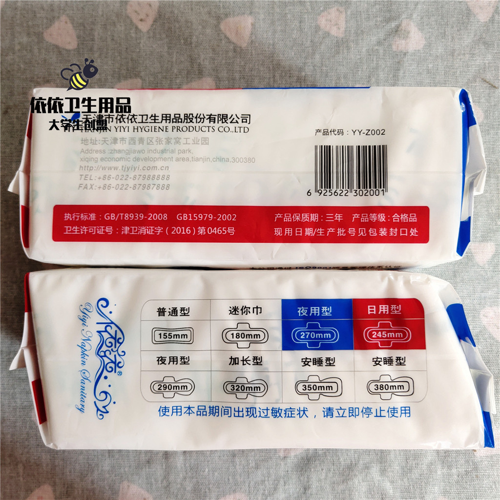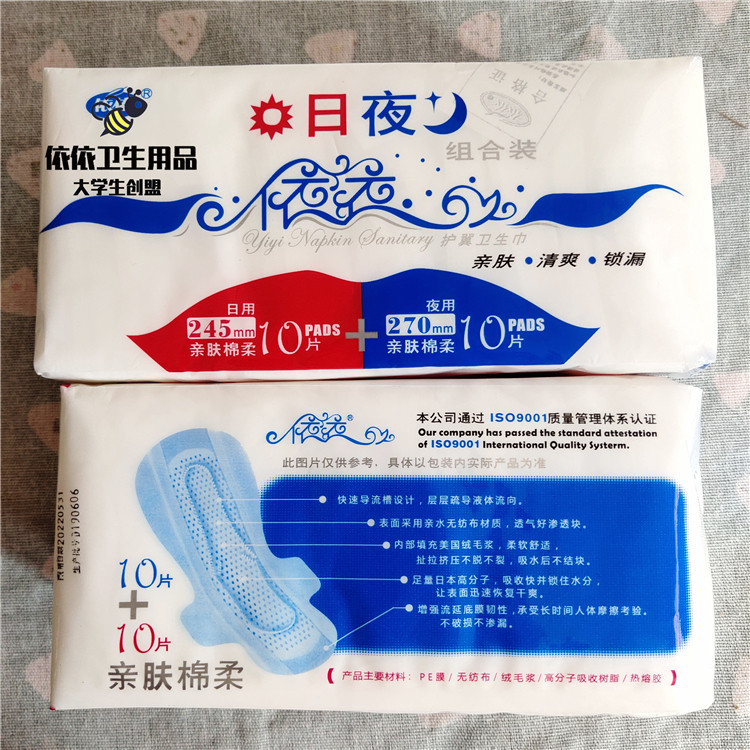 A set of 6 packs of Yiyi Wing Sanitary Napkin Combination Pack 245mm for day and 270mm for night use skin-friendly cotton soft 20 pieces