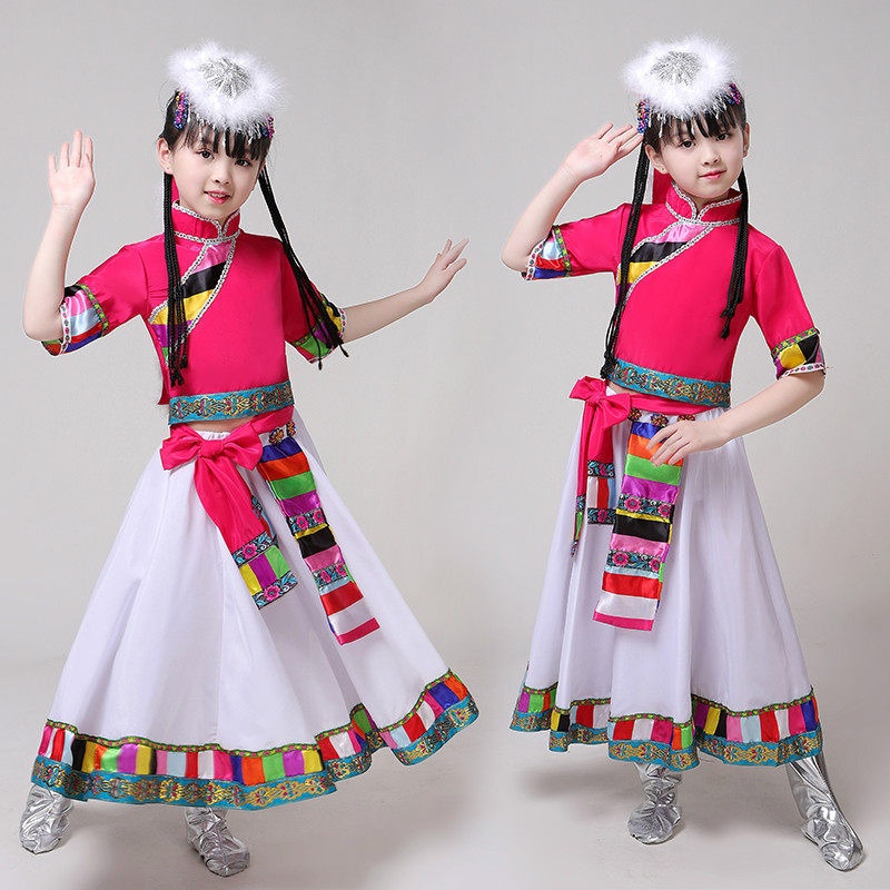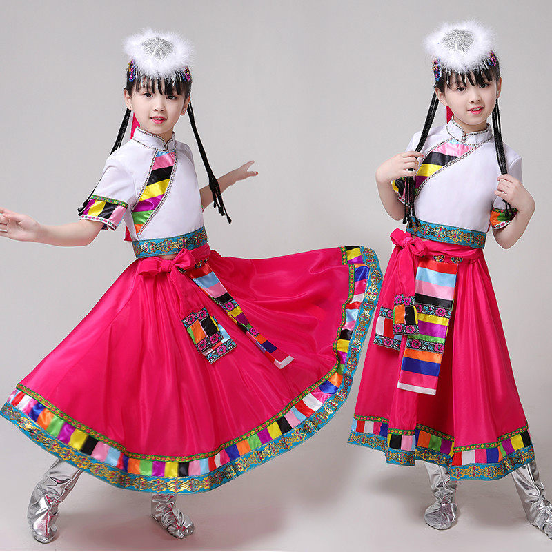 New children's Tibetan costumes water-sleeved costumes new ethnic Tibetan long skirt girls stage costumes