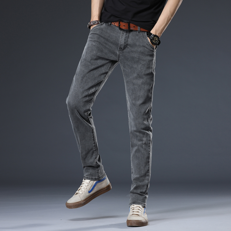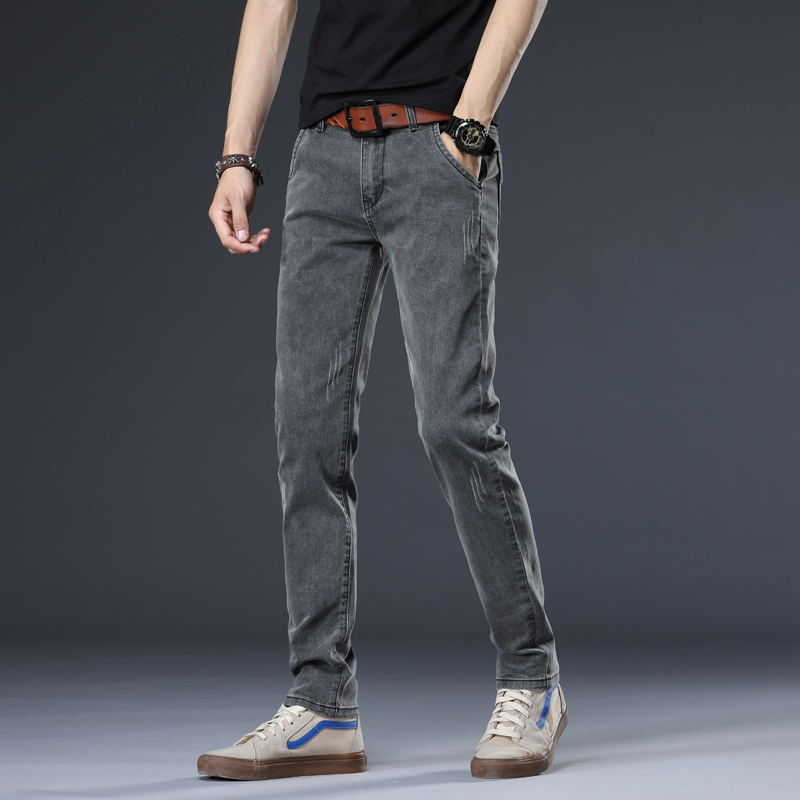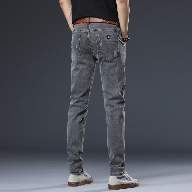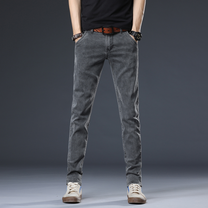 Tide brand jeans men's spring and autumn tide brand Korean version trend all-match casual trousers elastic slim cigarette pipe pants men