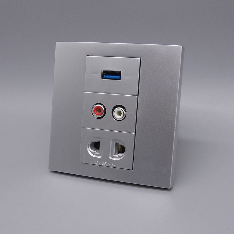 Silver Grey 86 Type USB Straight Head AV Screwline Red White Audio Two-Hole Power Outlet 3 0 Edition Data Extension Panel
