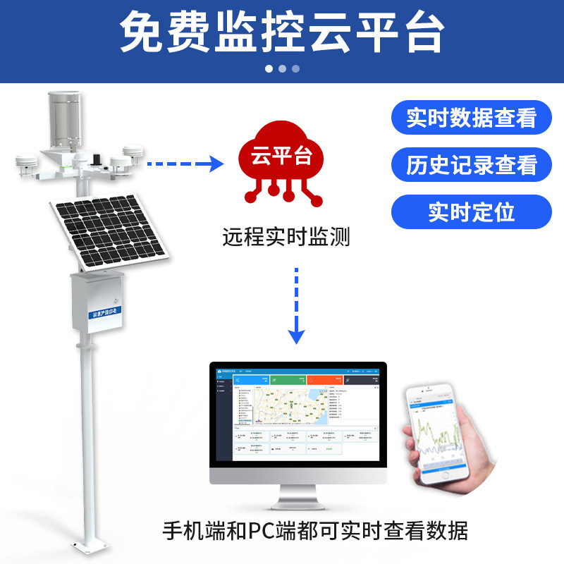 Light noise PM2 5 PM10 ozone TVOC tipping bucket rain gauge UV sun total radiation evaporation volume photosynthetic effective radiation soil temperature and humidity L