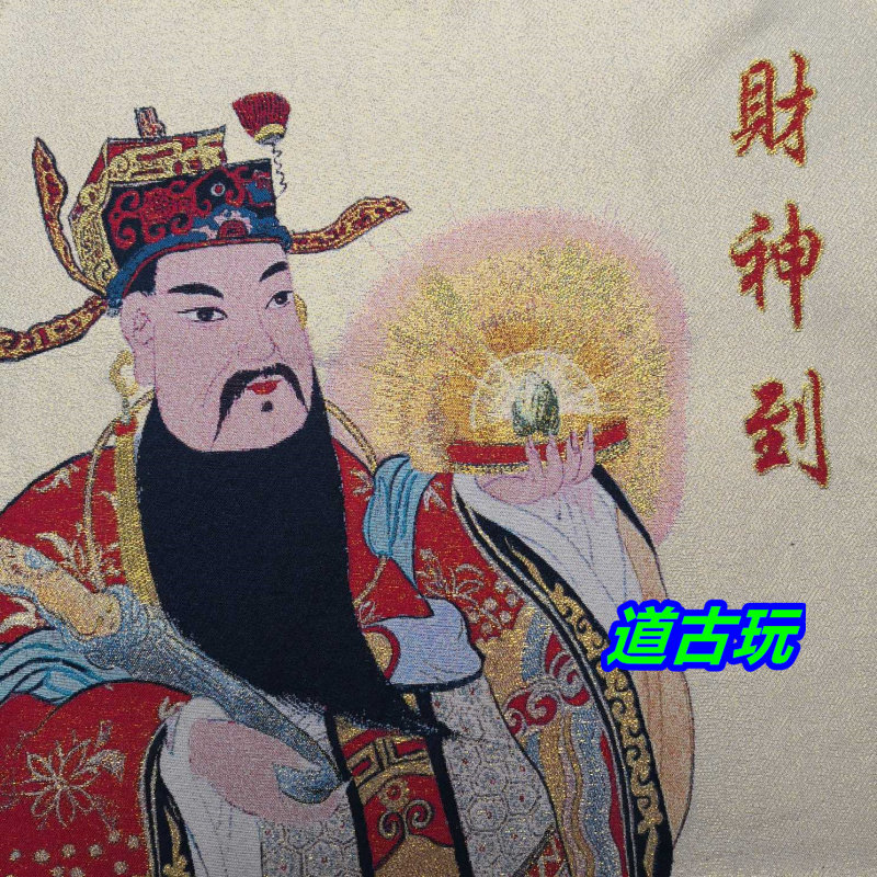 Tangka Painting Golden Silk Embroidery Brocade Painting Religious Embroidery Chaeity to Finance and God Secret Religious Buddha hands with Yuanbao