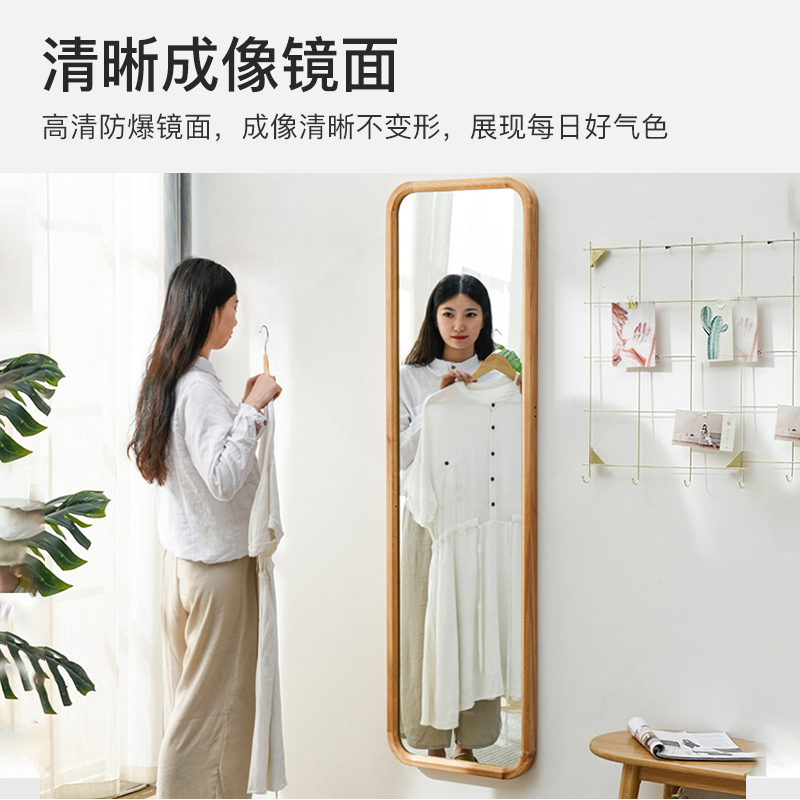 Nordic solid wood mirror full body piercing mirror floor mirror girls bedroom fitting mirror home wall hanging type net red mirror