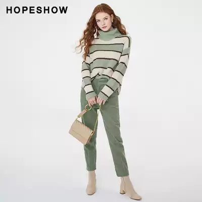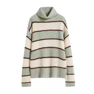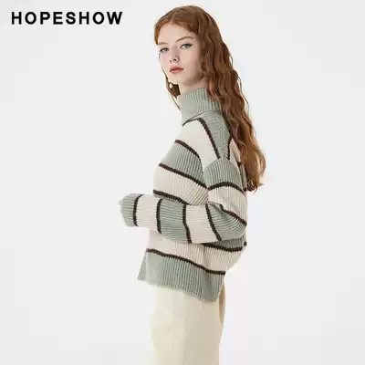 Red Sleeve Shopping Mall Same Sweater Women's hopeshow Winter New Turtleneck Green Stripe Vintage Knit