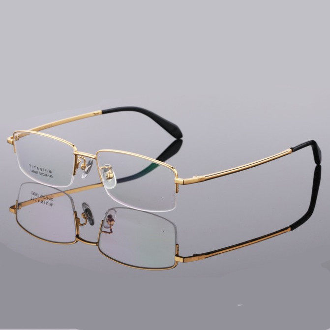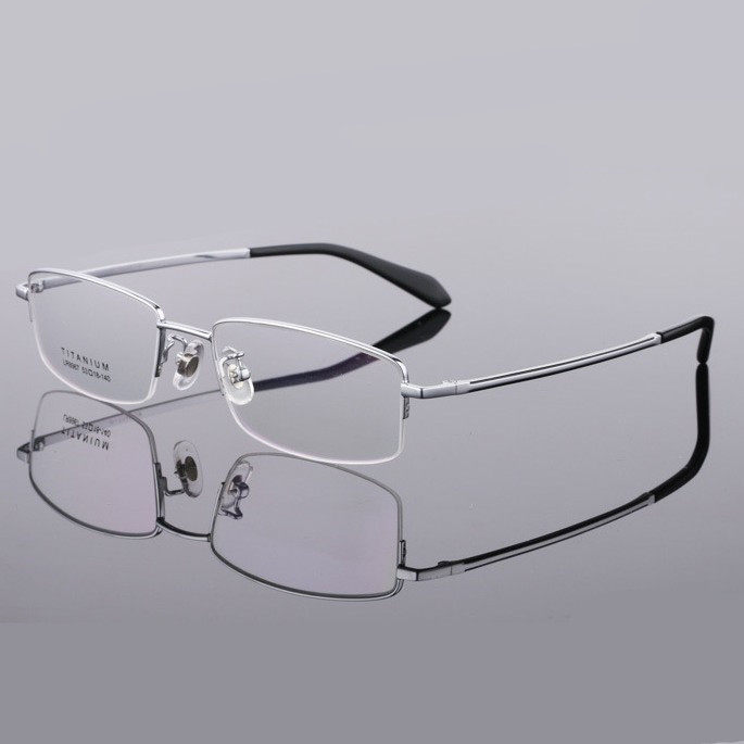 Male pure titanium myopia glasses half-frame business finished product with degrees 75150200250300400450 degrees