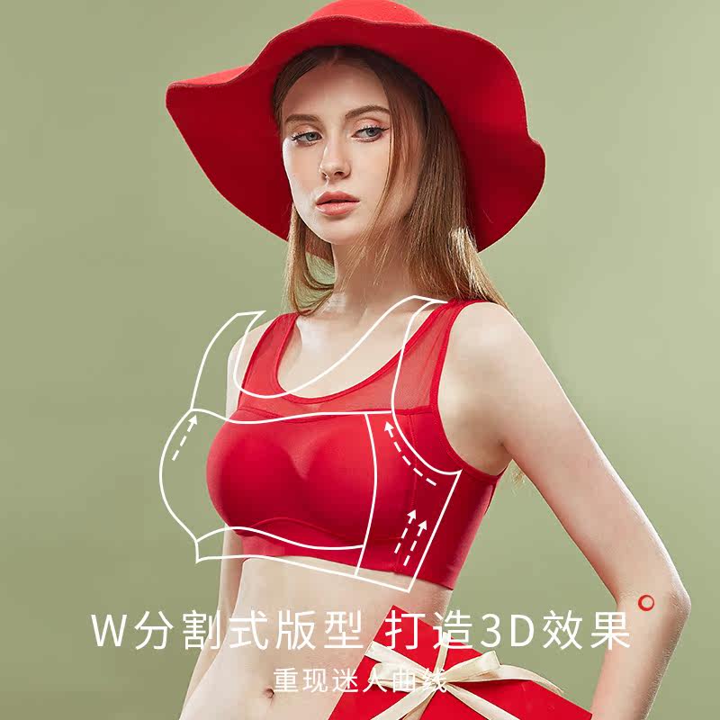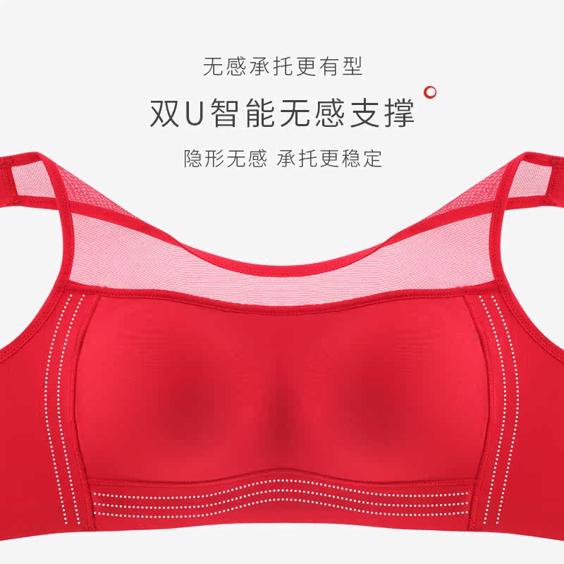 Jimei Fine year of life underwear women's bandeau anti-light bra thin section without rims wedding bride red bra