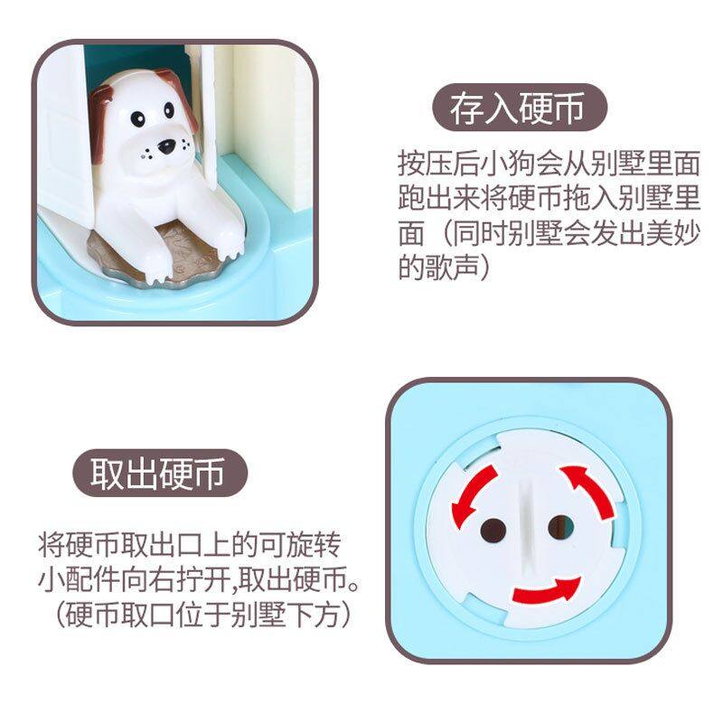 Activity money stealing money white cat-not sending battery pink room-money dog deposit money pot purple room-money dog deposit money pot eat money black and white dog (battery sticker) eat money brown white dog (battery stickers) eat money brown black