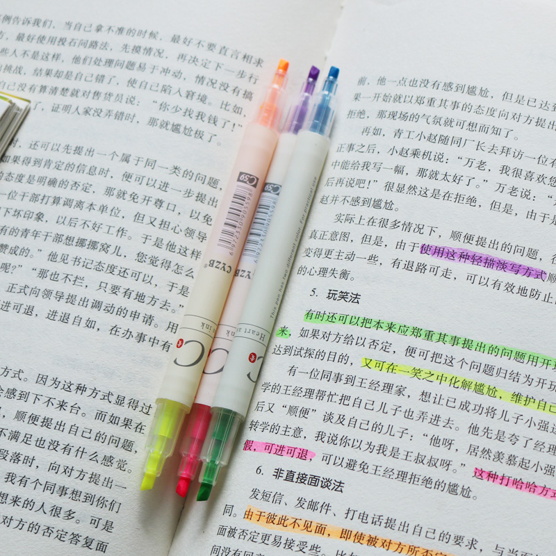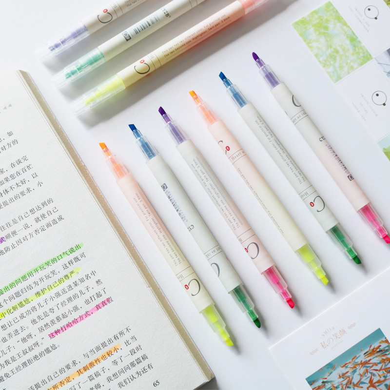 Double-headed, two-color highlighter, color light marker, handwritten marker, student notes, key marker, scribbled pen, stationery