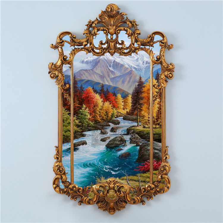 124 * 75 US-European style Xuanguan painting corridor painting pure hand painted building oil painting traffic carriage scenery polyppot small deer