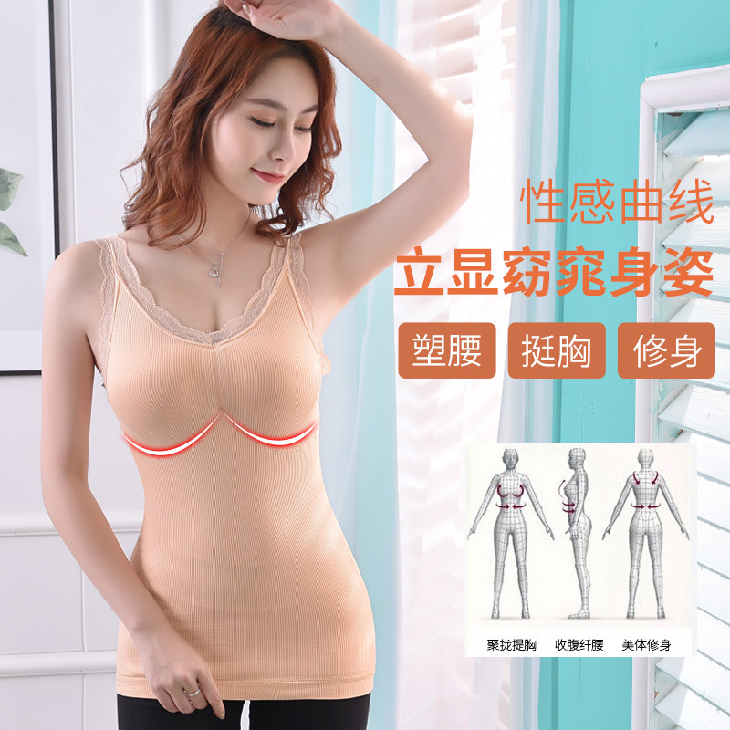 Autumn winter warm vest woman thickened with velvety V lead lace plastic body sensuality with chest cushion warm vest rub chest blouse