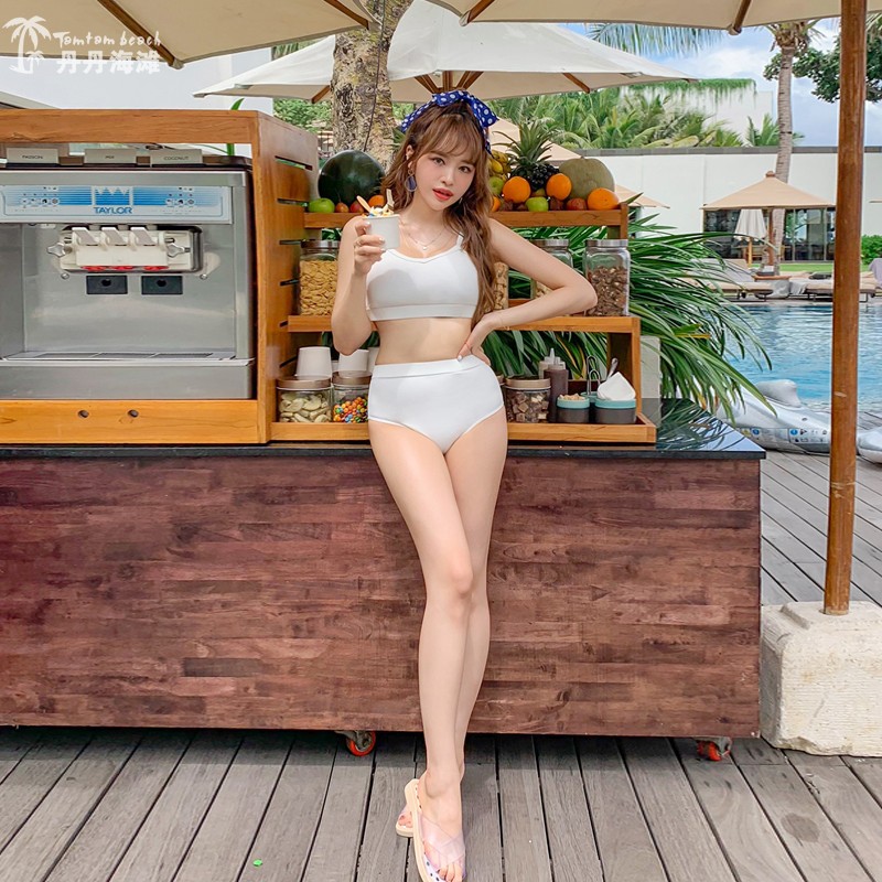 South Korea's 2021 new two-piece swimsuit women's small breasts gather high waist cover belly show thin sex rush hot spring vacation bikini