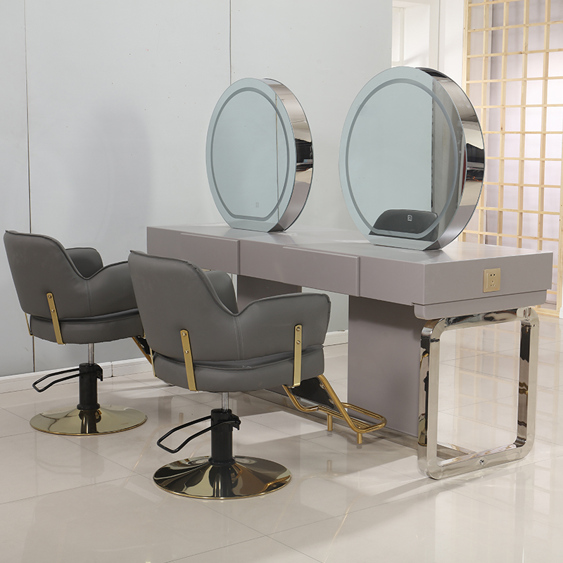 Hairshop mirror lens double-sided hairdresser special solid wood cutting mirror deck with light luxury barber shop hot table