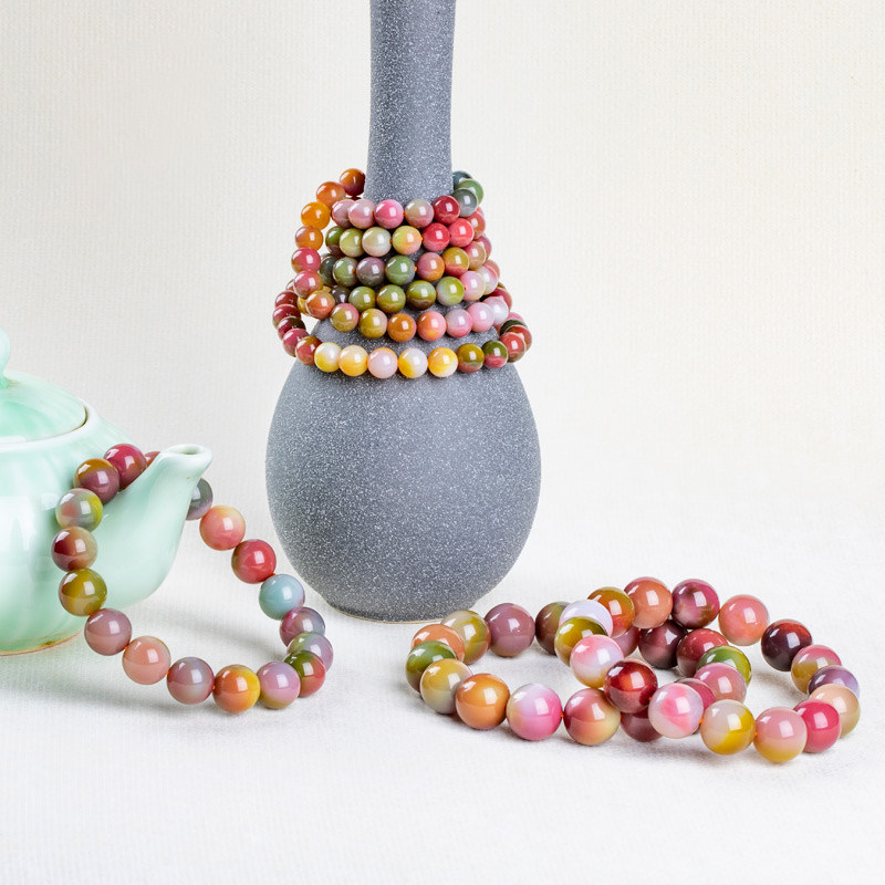 Colorful salt source agate hand three r color salt source full meat single ring bracelet hanging chain crystal bracelet female old Zhao Jiazhi