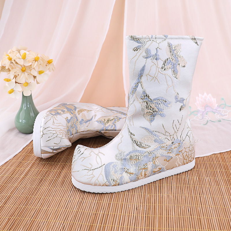 (Hare Ink Loft) Gufeng Han Boots Opera Men's And Women's Shoes Hanfu Boots Traditional Women's Ancient Dress Bow Boots Embroidered Boots