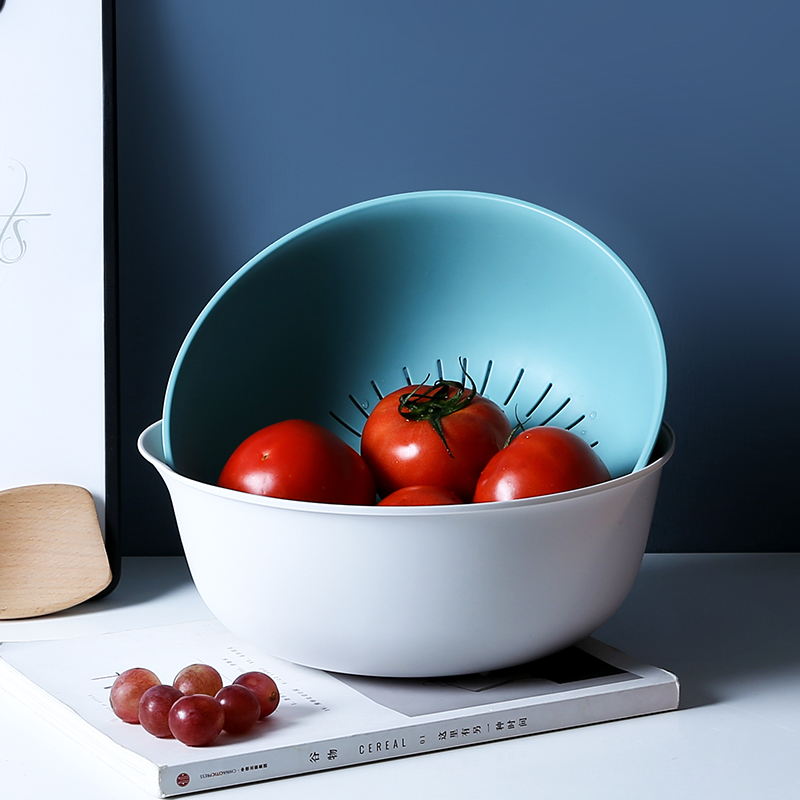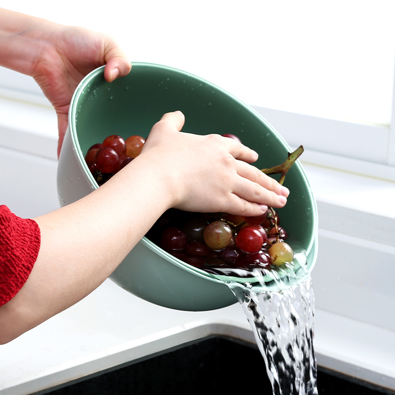 Double-layer plastic basket wash fruit and vegetable basket kitchen multi-functional dense hole multi-purpose basket
