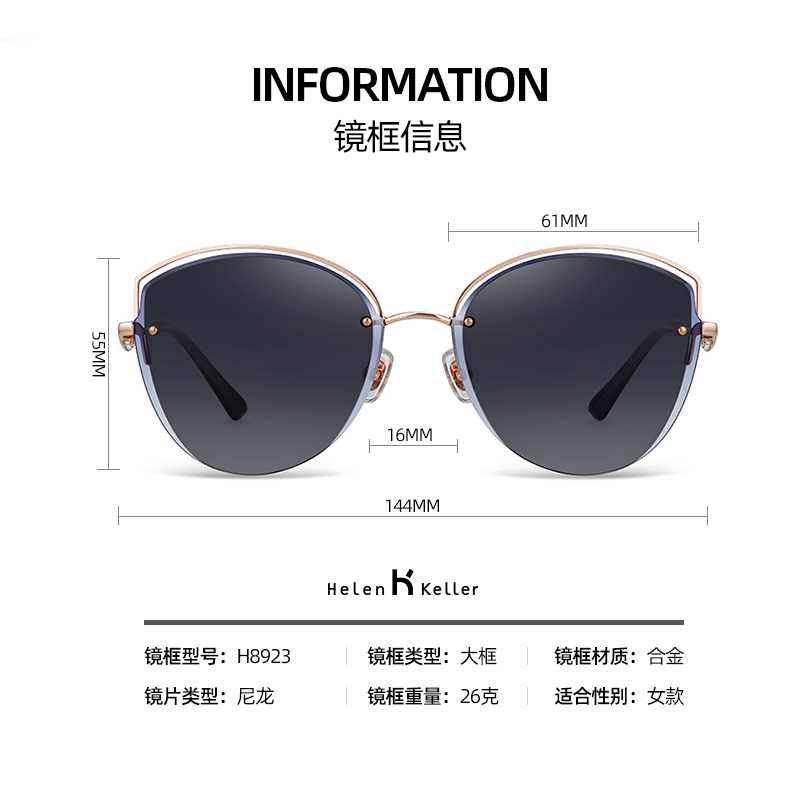 Helen Keller Polarized Sunglasses Women's Glasses Drive Light Hollowed-out Cat Eyes Sunglasses 2020 New Trends 8923