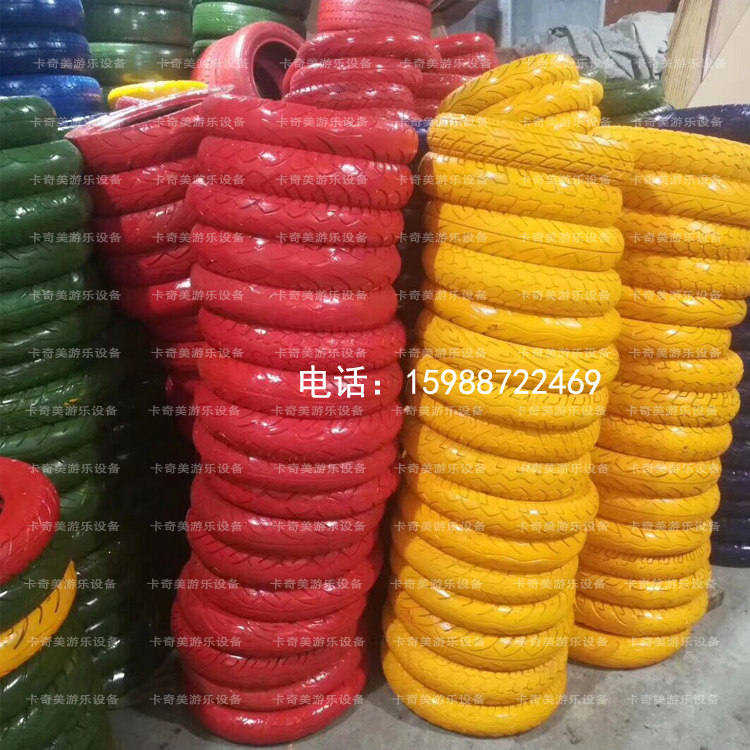 Kindergarten tire outdoor toy rubber sports tire paint color children swing waste with mesh tire car