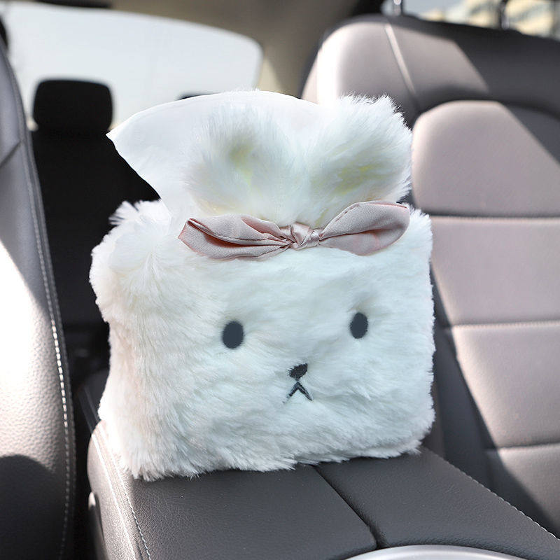 Car White Rabbit Headrest Neck Pillow Cartoon Cute Car Seat Pillow Creative Car Seat Belt Shoulder Protector Set