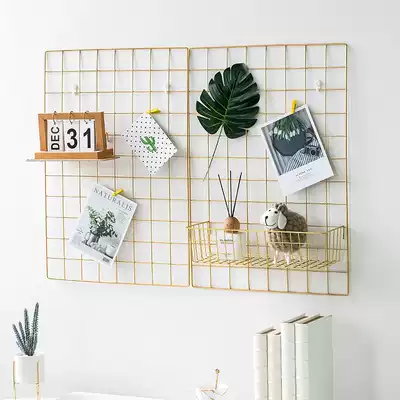 Nordic wrought iron grid Photo wall decorations ins wind Bedroom room Bedroom dormitory wall wall pendant