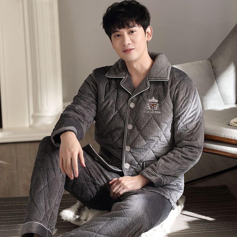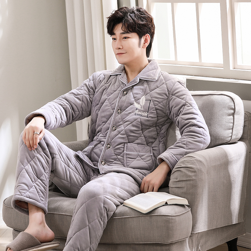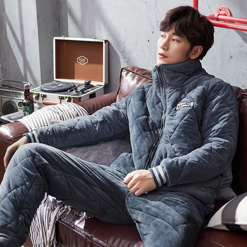 Coral Suede Men Sleeping Clothes Autumn Winter Style Thickened and warm winter Flannel Triple Clip Cotton Youth Home Conserved-Taobao