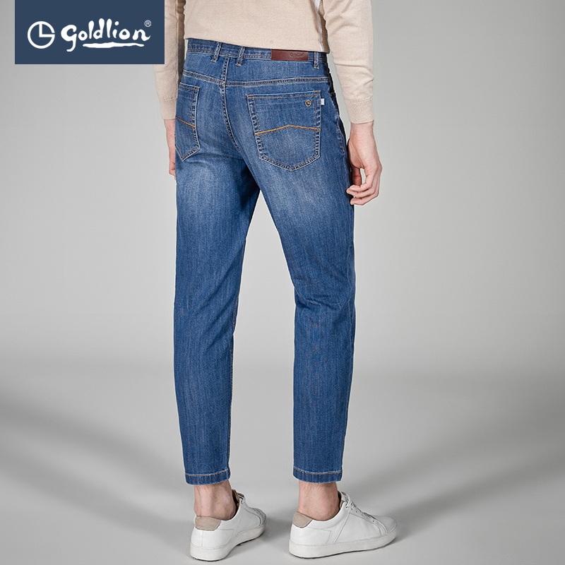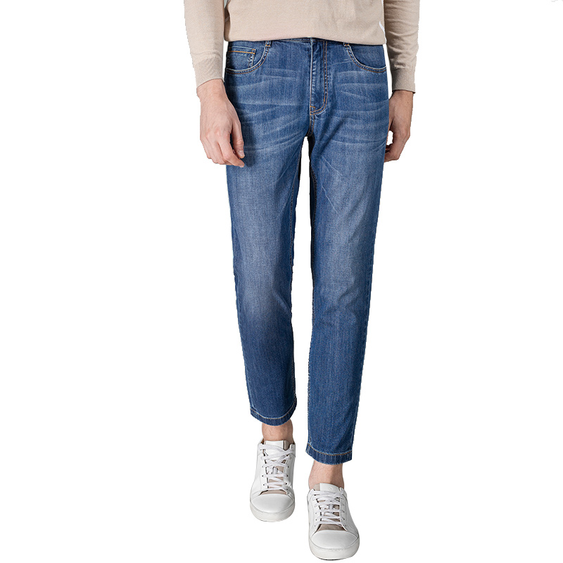 Jinlilai new men's comfortable straight fashion cat whiskers washed denim nine-point pants men(Hui)