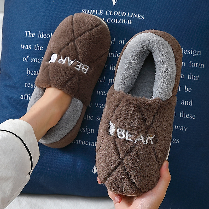 Men's cotton slippers winter indoor thick-soled couple home thickened outerwear plus velvet wrap feet warm slippers men's winter