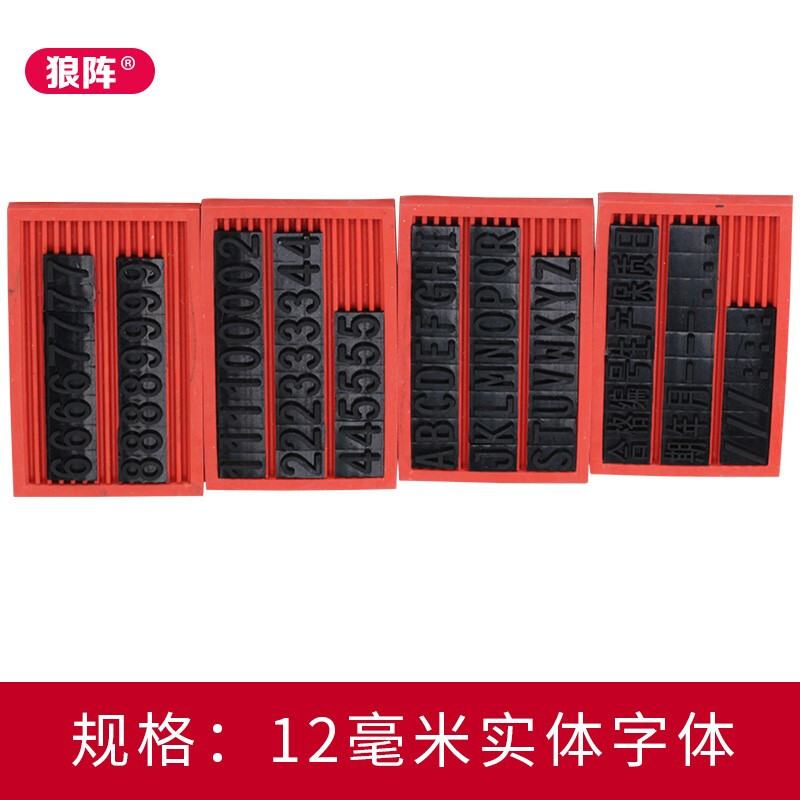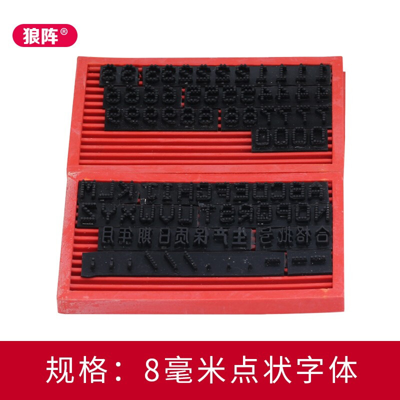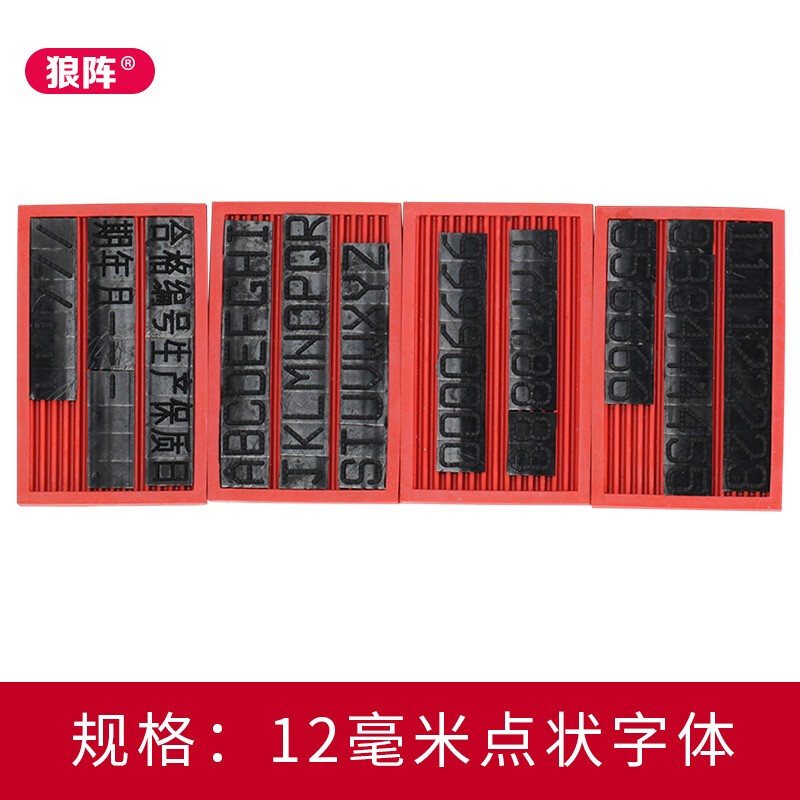 A pair of 8mm dot-shaped characters, a pair of 12mm dot-shaped characters, a pair of 12mm solid characters, a pair of 13mm solid characters