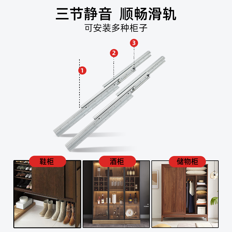 Stairs shoe cabinet slide rail tobottom reinforced heavy duty 1m-meter three-section telescopic pull-out shoe cabinet Wine Cabinet Rail Slide-Taobao